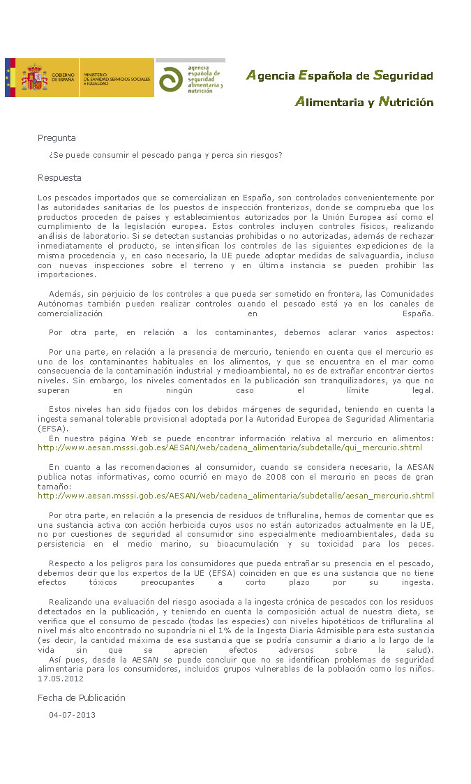¿Se puede consumir el pescado panga y perca sin riesgos?